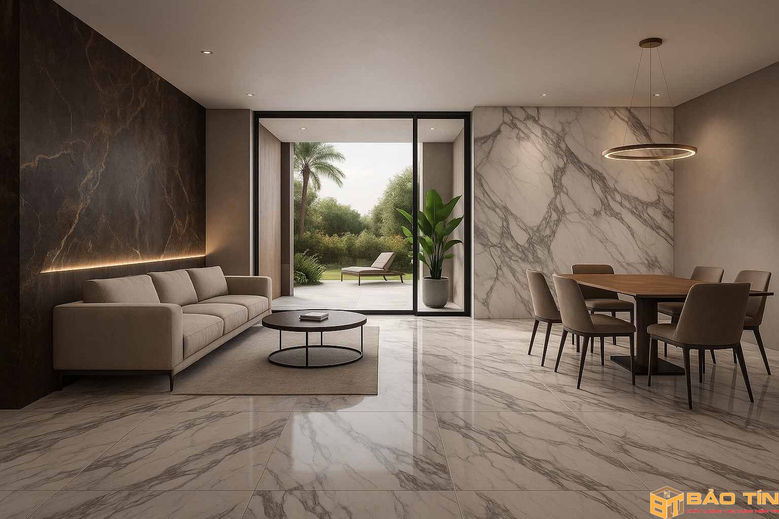 Gạch ốp lát kích thước lớn dự đoán sẽ tiếp tục được khẳng định vị thế của mình trong thị trường gạch ốp vào năm 2026. Đây là giải pháp hoàn hảo cho những ai yêu thích sự hiện đại, sang trọng với không gian sống rộng rãi và thoáng đãng.
