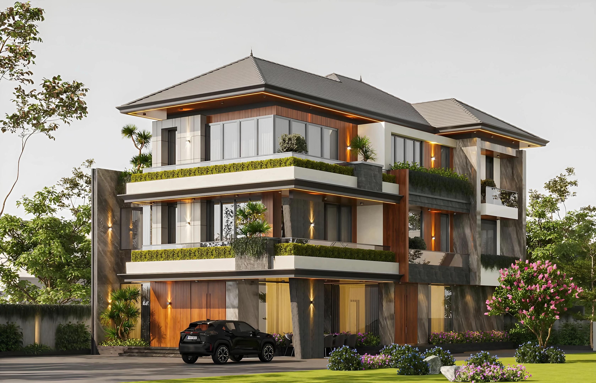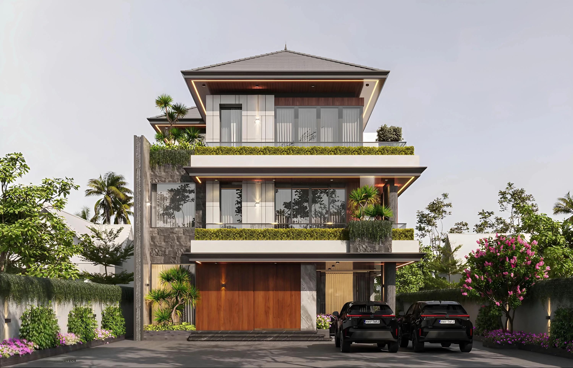 MẪU 01: BIỆT THỰ MÁI NHẬT 3 TẦNG, TỔNG DIỆN TÍCH 700M2